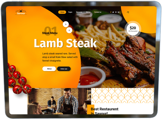 With Savour you can create the perfect restaurant menu and display your dishes in a truly captivating manner. Choose your preferred skin type, decide how you would like to order your specialties and mark the most favored delicacies on your menu.